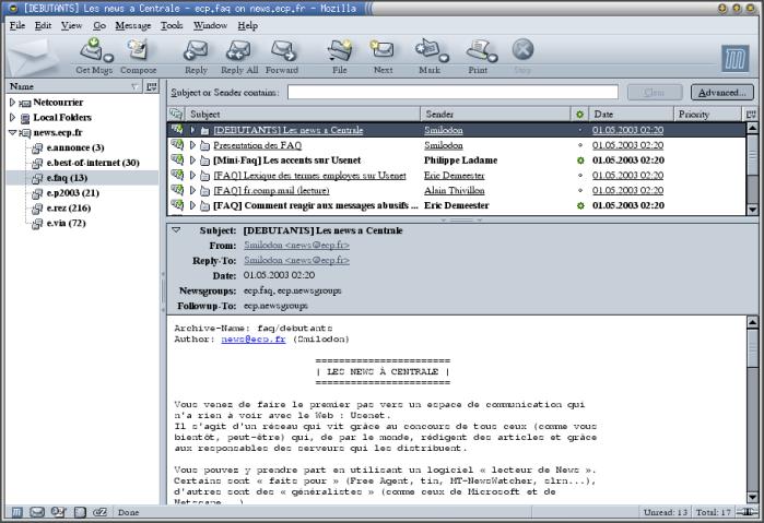 Mozilla comprend également un lecteur de mail (et de news) complet capable de faire du POP, de l'IMAP, et de trier les mails automatiquement.